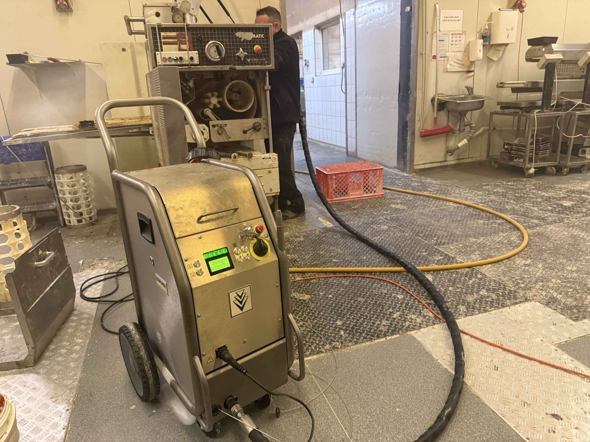 Skuteczny sposób na usuwanie tłuszczu, olejów i silnych zabrudzeń z dużych powierzchni. Wysoka temperatura wody zwiększa efektywność czyszczenia bez konieczności stosowania agresywnej chemii. Doskonale sprawdza się w halach, warsztatach i na zewnątrz obiektów.